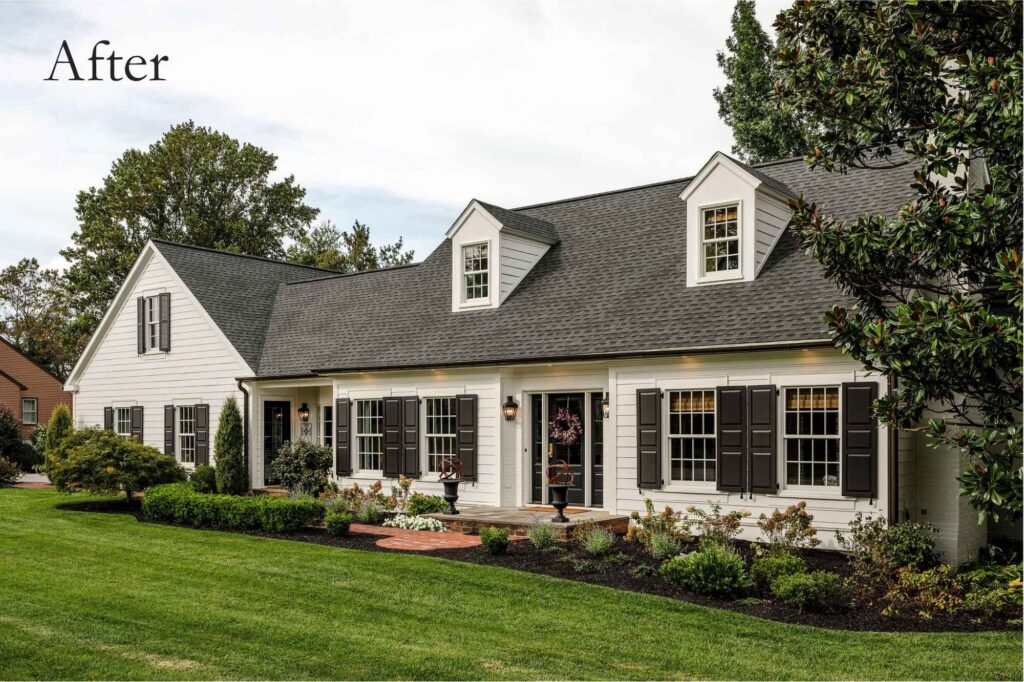 Look for ways to add character here and there! Often times, character really comes in the details! Try switching out your lighting fixtures or hardware. Add trim or wallpaper to a boring wall or up the staircase! The fun part about this is that it is a process that takes time, and your home will evolve as you go! Check out one of our recent exterior renovations below for some inspiration!